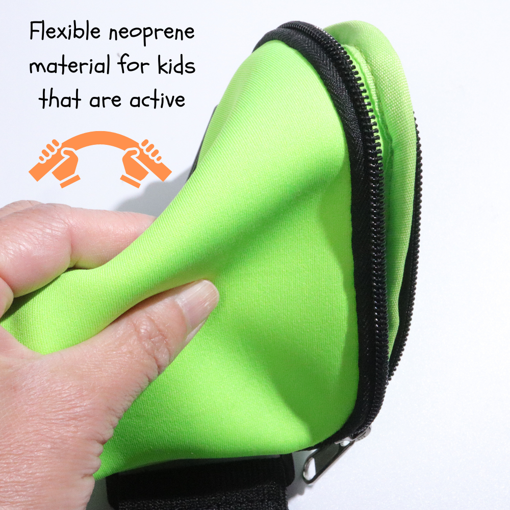 A strong hook and loop on both sides to fit the smallest kid and adjustable for growth.